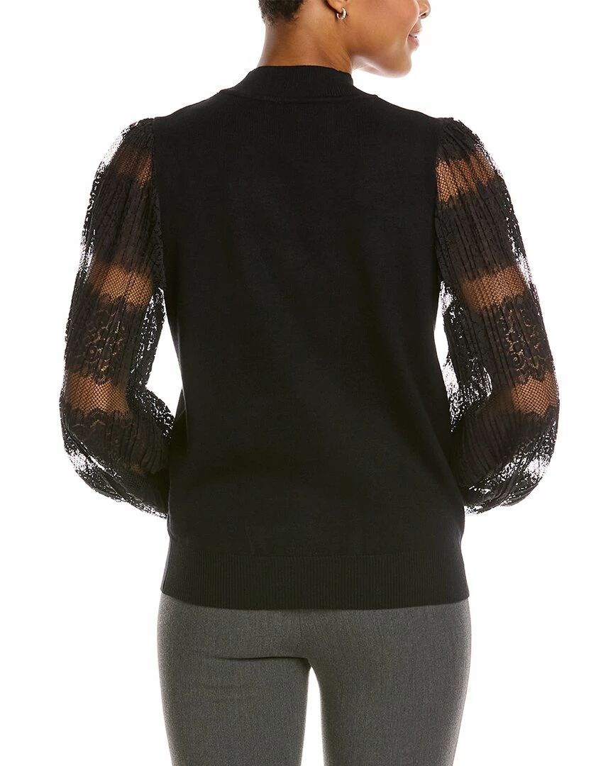 Nanette By Nanette Lepore Pleated Lace Sleeve Sweater Women Sweaters & Knits