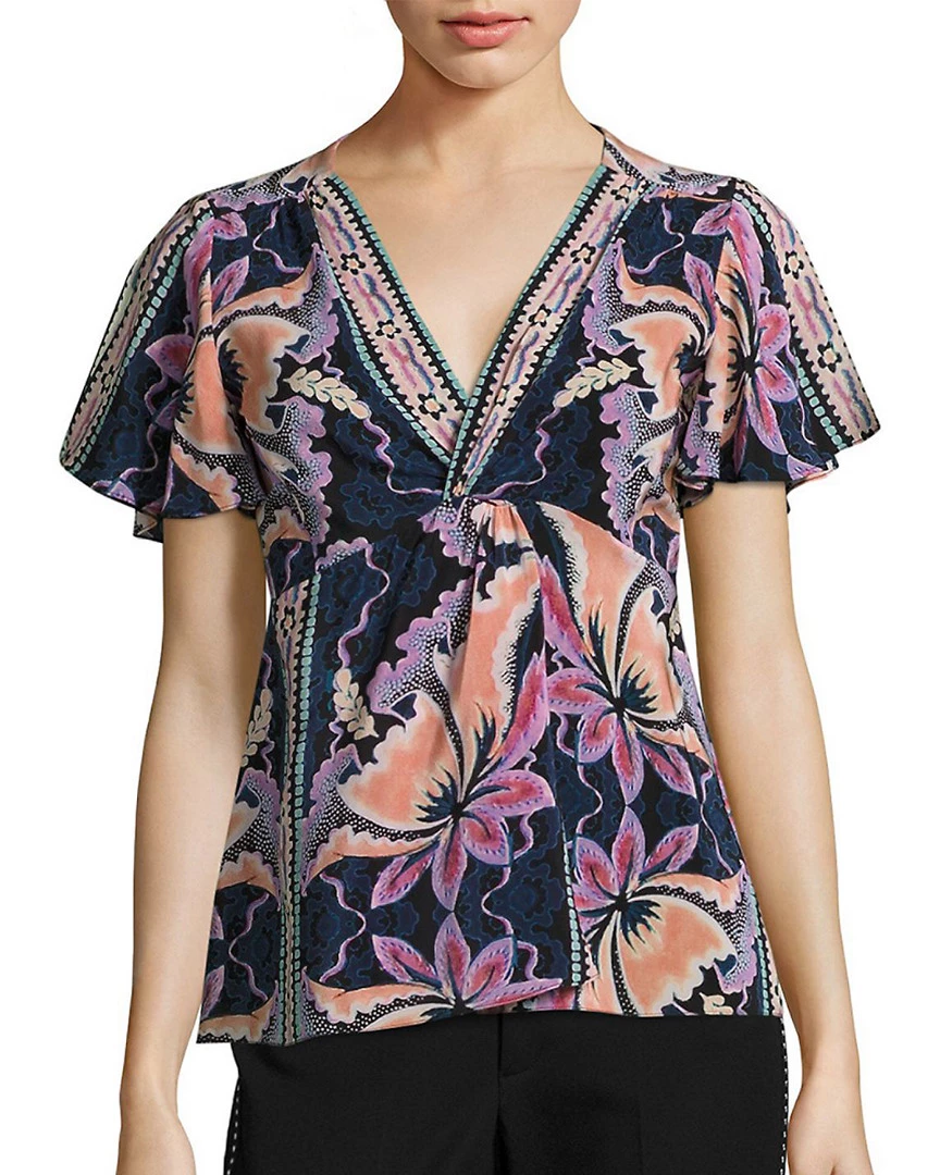 Nanette Lepore Venus Floral-Print Silk Top Women Tops